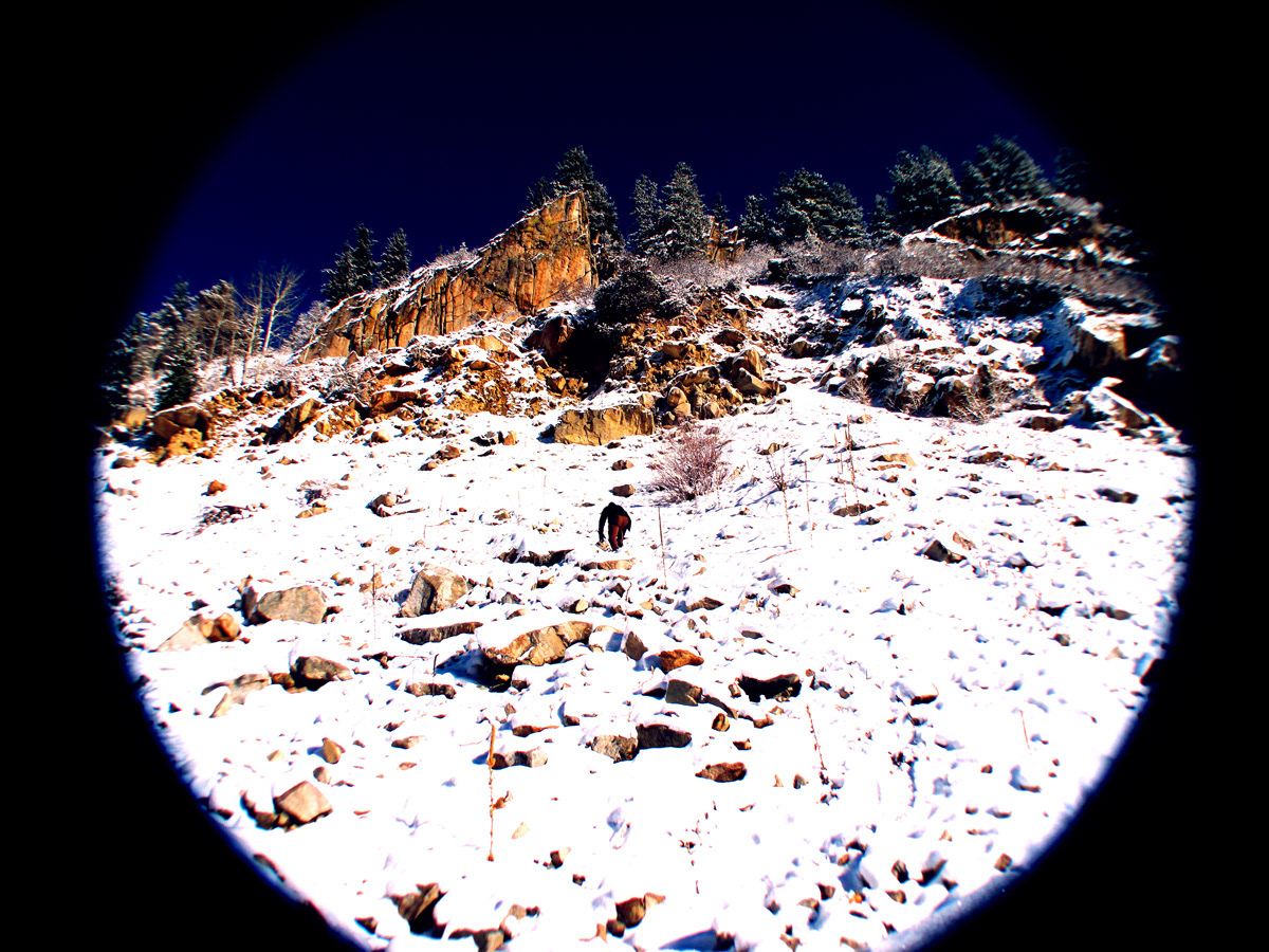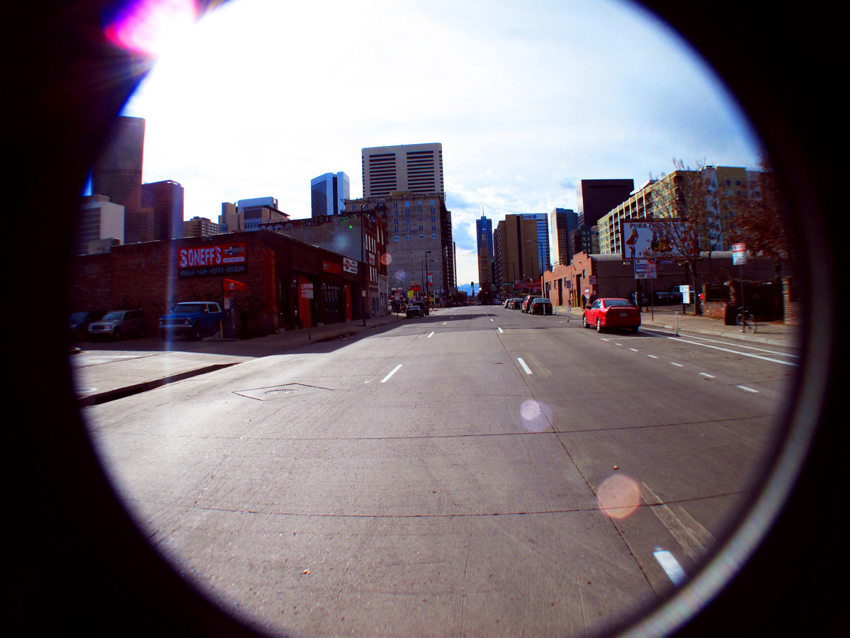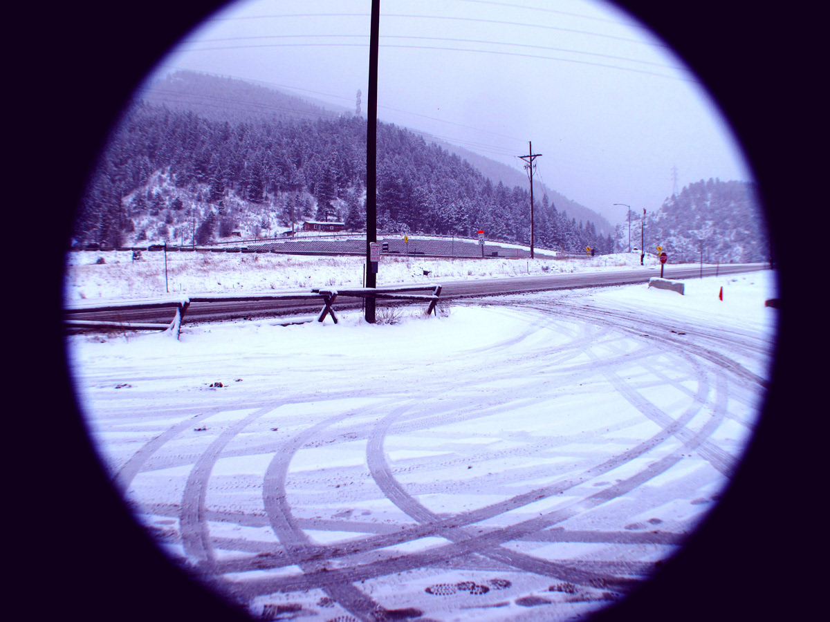 It was 2am and we were at our usual watering hole on another humid, August Friday night. One beer leads to another, and by the time we left the bar we had concrete plans to make up for lost time and fly out to Colorado. Fast-forward to December, and the only camera I have at my disposal would is my dad's disused 2004 Canon point-and shoot digital camera with a wide-angle zoom lens stuck to the front. Thirteen wasted gallons of elbow grease later, and I decided I like the look of the intimacy provided by the circular frame. Through Photoshop I was able to evoke a fast-paced, streaky aesthetic from, mimicking the impulsive decision-making of that August night.